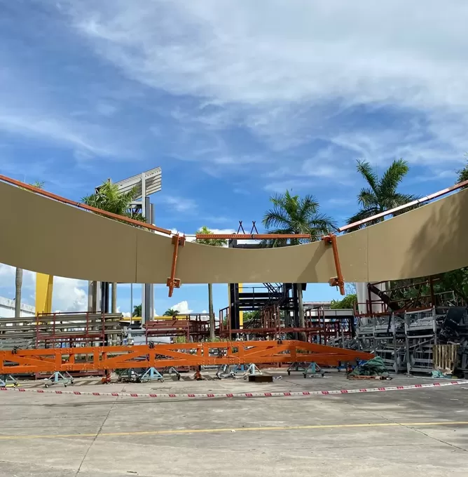 Precision fabrication and concealed fixing systems enable seamless integration with the airport’s futuristic architectural vision.