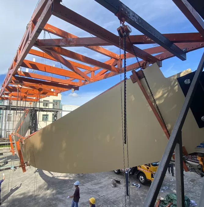 30/40mm ultra thick and ultra large aluminum panel: Designed with exceptional structural strength and stability, ideal for large-span and high-wind-load conditions. Individual panels span several meters, offering both scale and rigidity.