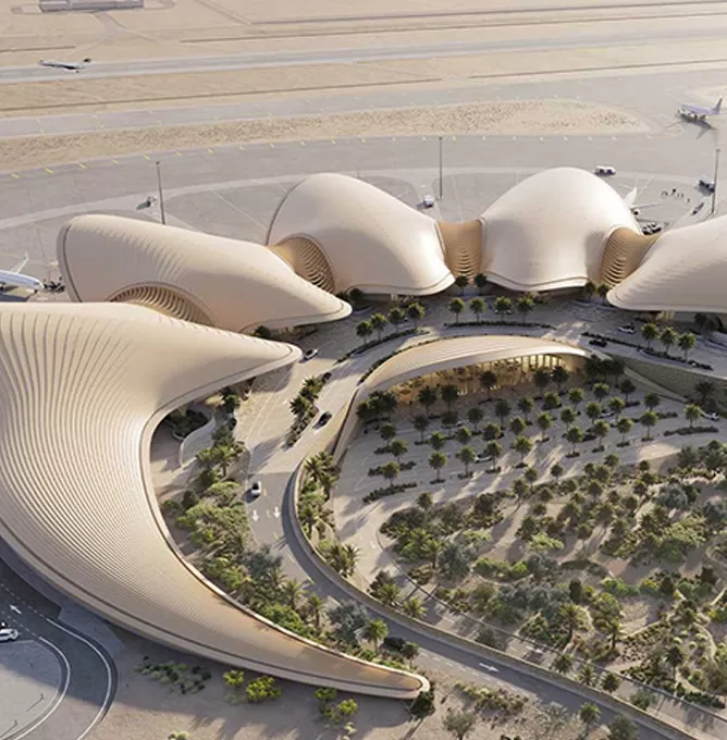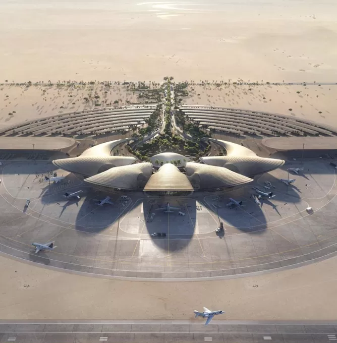 Situated on Saudi Arabia’s western coastline, the Red Sea Airport is a visionary infrastructure project designed to serve as a sustainable gateway to the Red Sea tourism region. Designed by world-renowned architects, the terminal features organic forms and futuristic detailing inspired by natural landscapes.