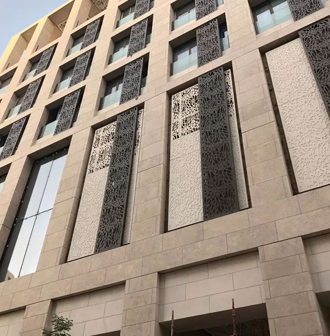 Alu. Screen Panels: Inspired by traditional Islamic motifs, these panels are precisely CNC-cut and surface-coated to deliver shading, privacy, and aesthetic value, transforming facades into expressive cultural statements.